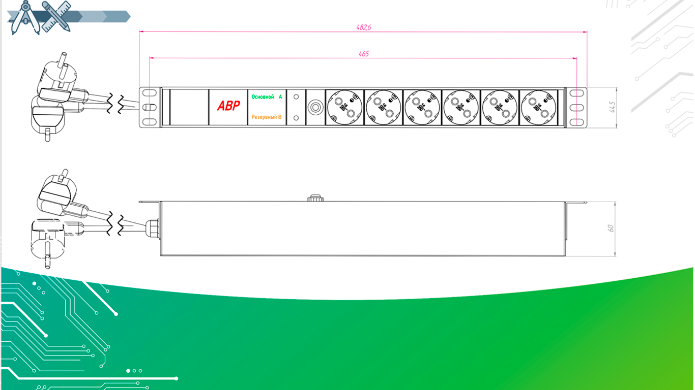 19 дюймов, высота 1U. |