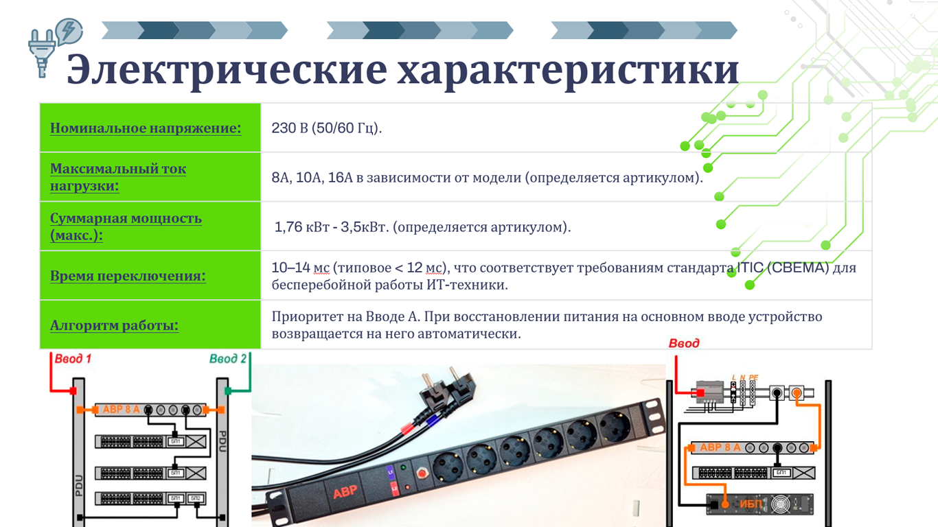 10–14 мс (типовое < 12 мс), что соответствует требованиям стандарта ITIC (CBEMA) для бесперебойной работы ИТ-техники. |