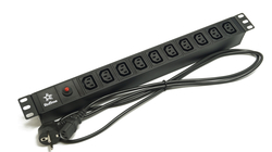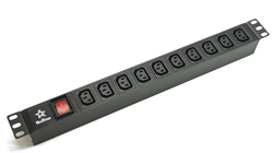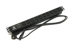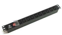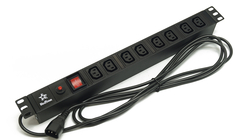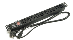 Блок розеток 19", 1U, 10 розеток IEC 60320 C13, выключатель с подсветкой, однофазный 10A, вход питания IEC 60320 C14. RS19-10C13-S-C