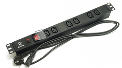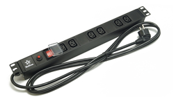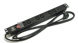 Блок розеток 19", 1U, 6 розеток IEC 60320 C13, выключатель с подсветкой, функция защиты от перегрузки, однофазный 10A, вход питания IEC 60320 C14. RS19-6C13-S-M-C