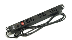 Блок розеток 19", 1U, 8 розеток IEC 60320 C13, выключатель с подсветкой, функция защиты от перегрузки, однофазный 10A, кабель питания 2.5 метра IEC 60320 C14. RS19-8C13-S-M-10-2.5IEC