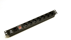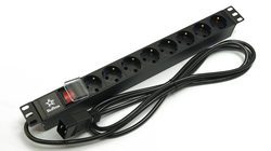 Блок розеток 19", 1U, 9 розеток Schuko, индикатор питания, однофазный 16A, кабель питания 3 метра. RS19-9SH-I-16-3EU