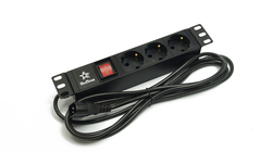 Блок розеток 10", 1U, 3 розетки Schuko, выключатель с подсветкой, однофазный 10A, кабель питания 2.5 метра. RS10-3SH-S-10-2.5IEC