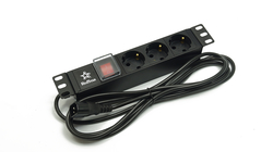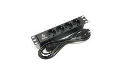 Блок розеток 10", 1U, 4 розетки Schuko, однофазный 10A, входная розетка питания IEC 60320 C14. RS10-4SH-C