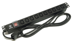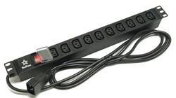 Блок розеток 19", 1U, 10 розеток IEC 60320 C13, выключатель с подсветкой, однофазный 16A, кабель питания 2.5 метра IEC 60320 C20. RS19-10C13-S-16-2.5IEC