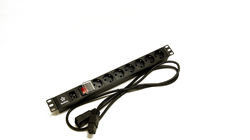 Блок розеток 19", 1U, 9 розеток Schuko, индикатор напряжения, однофазный 10A, кабель питания 2.5 метра с вилкой IEC 320 C14. RS19-9SH-I-10-2.5IEC
