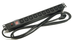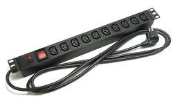 Блок розеток 19", 1U, 10 розеток IEC 60320 C13, выключатель с подсветкой, однофазный 16A, кабель питания 2 метра EU-Schuko. RS19-10C13-S-16-2EU